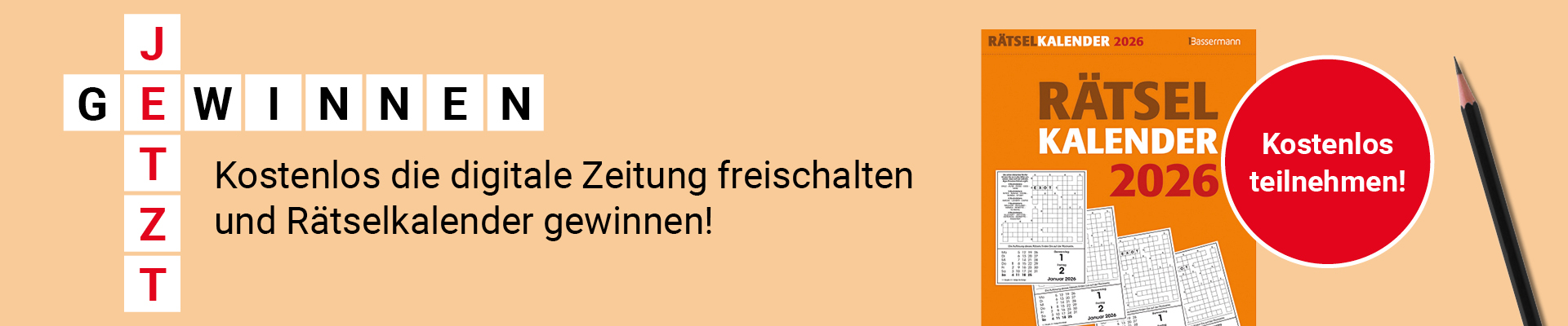 Jetzt die digitale Zeitung kostenlos freischalten und zusätzlichen Rätselspaß für ein Jahr gewinnen!