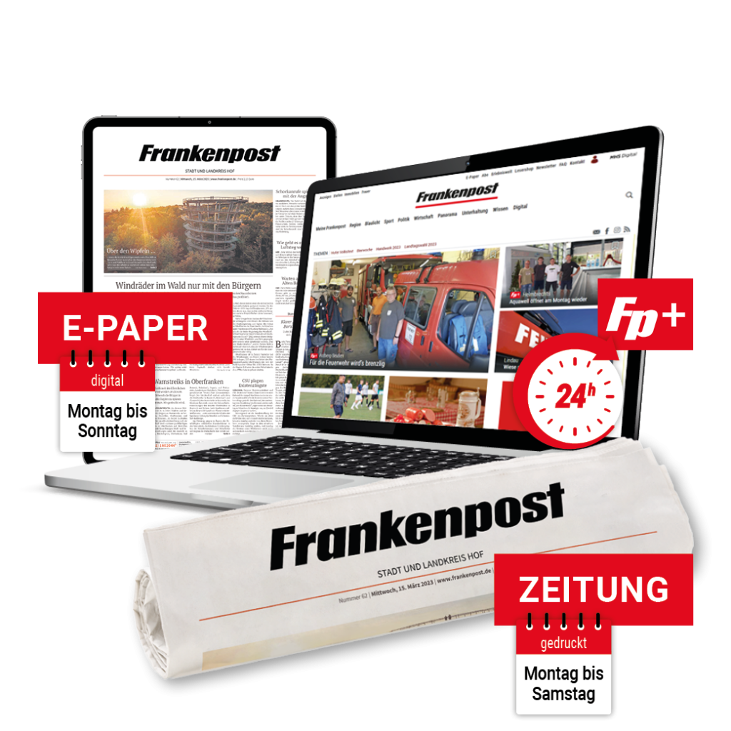 Jederzeit Zugriff auf das E-Paper der Frankenpost und gratis Zugriff auf alle Plus-Artikel der Nachrichtenseite. Zusätzlich erhalten Sie die gedruckte Zeitung am Wochenende (Fr. + Sa.).